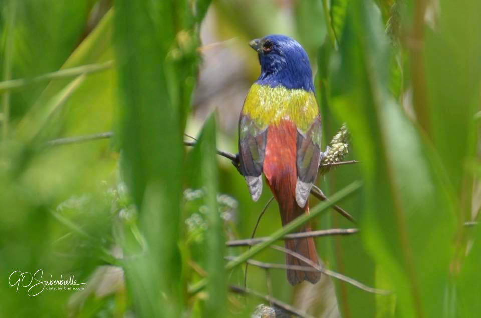 A: I tell people it’s mostly sitting very still for a long time, sometimes in uncomfortable positions! But I find it very relaxing, meditative—almost spiritual. And there are some truly thrilling moments, too, when you catch a glimpse of a new bird, and your adrenaline spikes, and your heart starts to race, especially if you’re trying to photograph it while it’s camouflaged in leaves. Seeing a “life bird” (on a birder’s wish list, essentially) like that painted bunting made me cry. I was just overcome.