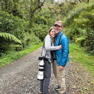 A: Well, Tufty is my favorite bird, as most folks know. I love that perky crest and inquisitive little black eye. Some of my recent favorites are the beautiful and interesting birds we’ve been fortunate to see in Central America in the past couple of years, like this Masked Tityra: